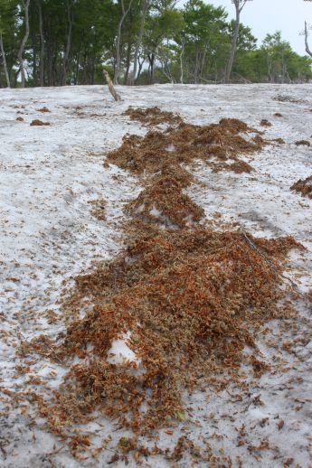 それでも4合目あたりから残雪が出始め、5合目あたりからは残雪歩きに。6合目の水場からブナ林の急登です。7合目の見晴らし台までくれば、一安心。その見晴らしのいい雪面を1頭のカモシカが悠然と横切っていきました。足跡は何度も見ていますが、南葉山でカモシカの実物を見たのは、初めてです。 |