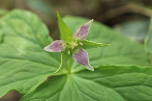 | 白花や薄紫のエンレイソウは、珍しい。 |