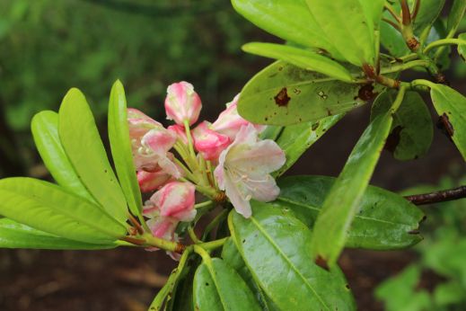 篭ノ登山の登山道のシャクナゲは、黄緑の新芽が伸びだしていましたが、花は咲いていませんでした。