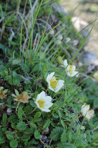 | 岩陵が終われば、硫黄岳山荘までは緩やかな下りだ。コマクサの群落がある。白馬岳や燕岳のような大群落ではないし、一つ一つの株自体も小さめだが、これはまたこれでよい。名残のウルップソウにも出会えた。 |