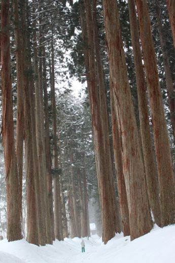 奥社に向けて歩いていくとともに、雪の降り方が徐々に強まってきます。時折、横殴りの吹雪も。