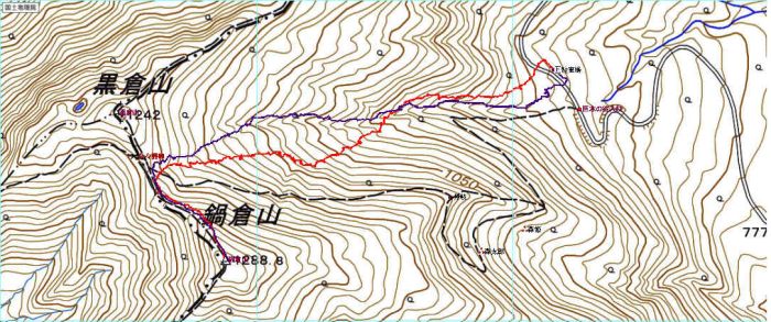 | 下山。今回は、黒倉山はパス。遠くでキツツキのドラムが鳴っています。 |