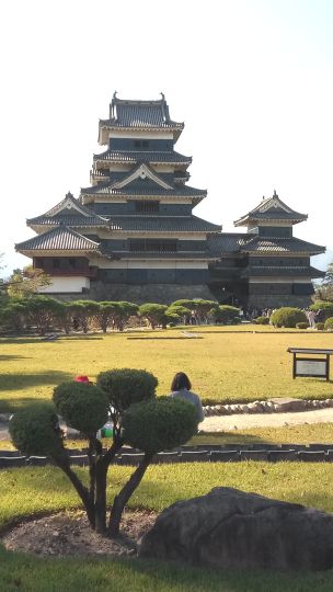 | 本丸に入ろうとしたら、長い行列。「20分待ち」の看板がありました。我々が入るころには、行列は2倍ほどに伸びていました。その行列、外国人の多いこと。「さすが国宝松本城」です。 |